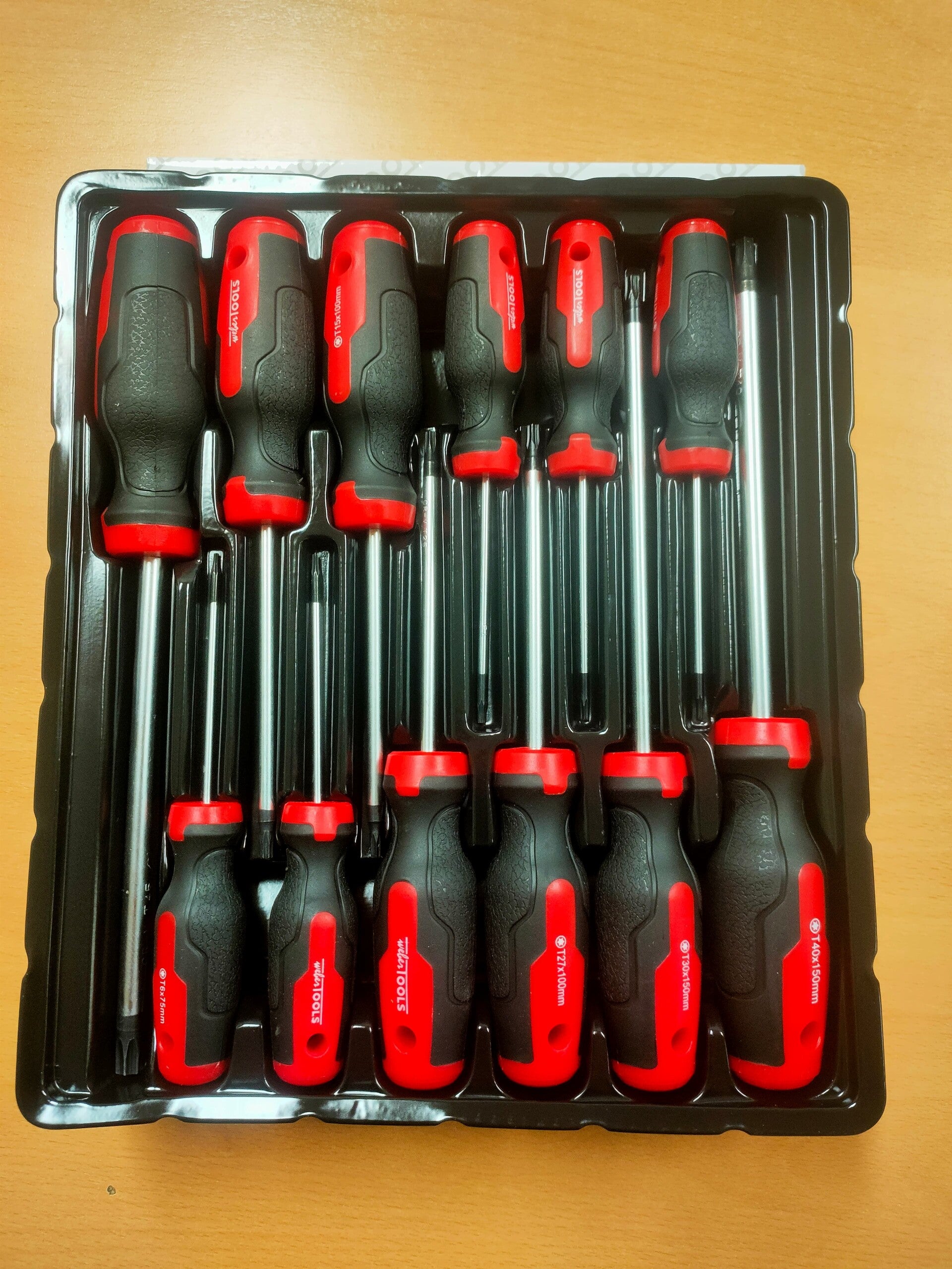 Weber Tools 12-delig torx schroevendraaier set. De schroevendraaiers zijn voorzien van een magnetische tip.