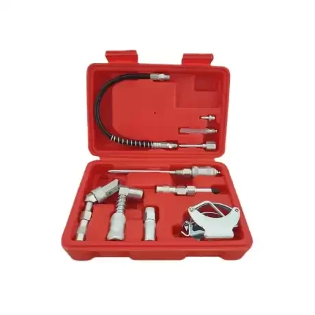 12-delige vetspuit adapterset voor de meest voorkomende hand & pneumatische vetspuiten. Geschikt voor smeernippels van staal, roestvrij staal en messing.